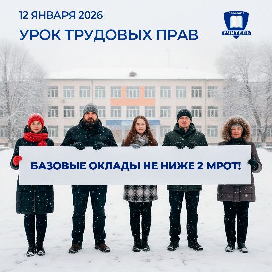 Уважаемые коллеги! Профсоюз «Учитель» предлагает 12 января провести такую акцию: либо на РоВ, либо на своих уроках рассказать о трудовых правах работников, в том числе, о роли профсоюзов.